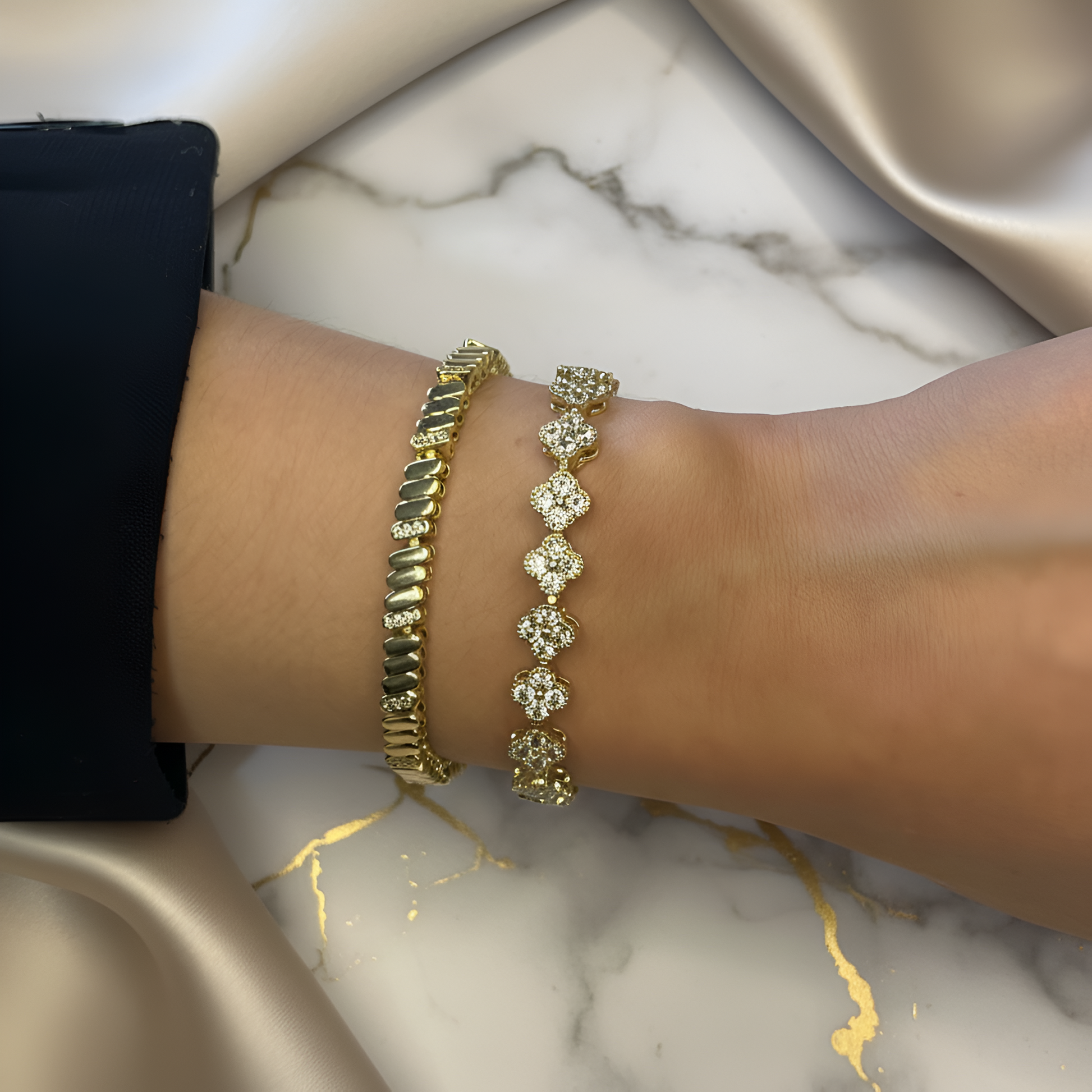 Golden Bloom 2’li Işıltılı Bileklik Kombini, zarafeti ve modern ışıltıyı aynı anda bileğinizde buluşturur. Hem günlük stillere hem de özel gün şıklığına kolayca uyum sağlar.